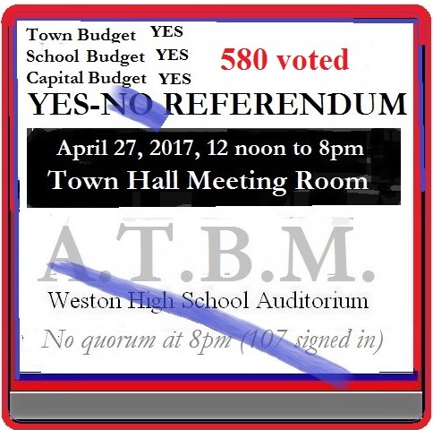 Weston’s Annual Town Budget Meeting (ATBM) is set for next Wednesday,