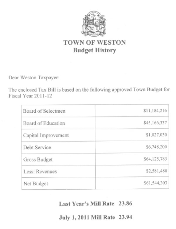 Budget: Weston-Today as well as Westport NEWS present as well as