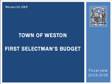 Feb. 18, 2020 Selectmen review First Selectman's Budget as proposed and approved it: http://www.westonct.gov/media/file/20_21FirstSelRecBudget.pdf