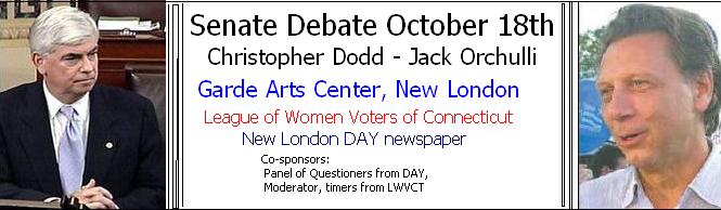 U.S. Rep. Rob Simmons, R-2nd District, and Democratic challenger James Sullivan of Norwich will debate at 8 p.m. Monday, Sept. 20. U.S. Sen. Christopher J. Dodd, the Democratic incumbent from East Haddam, and Republican opponent Jack Orchulli of Darien will debate at 8 p.m. Monday Oct. 18.
